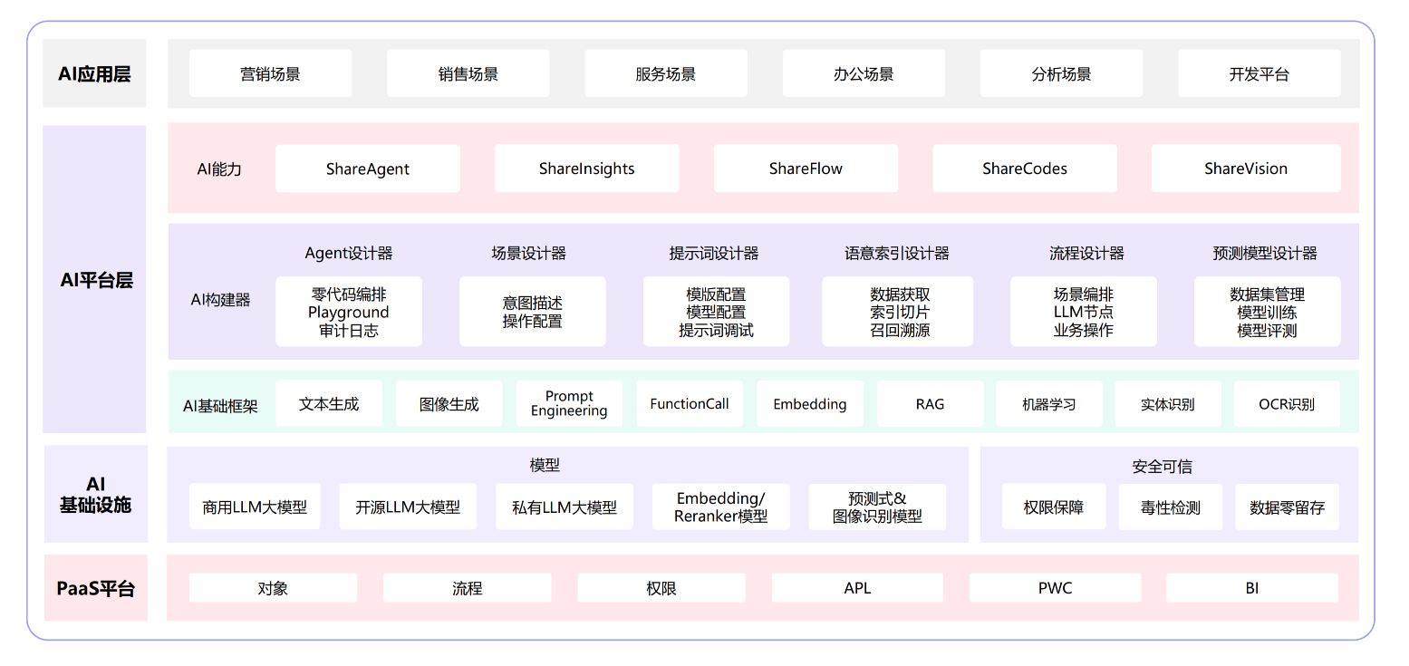 纷享销客的 ShareAI 平台正是这一范式的典型代表,它不再是单一功能,而是构建了一个企业级 Agent 矩阵,将 AI 能力深度融合进 CRM 的血脉之中。