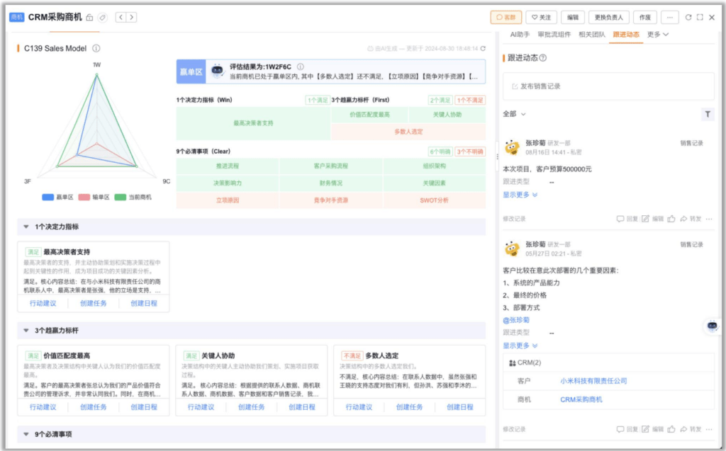 C139控单模型:基于AI算法评估商机9大关键指标,给出赢单概率与行动建议