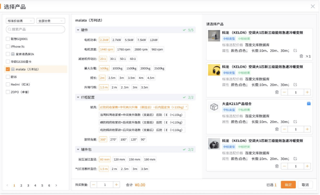 现场配置复杂产品组合(支持多级BOM结构)