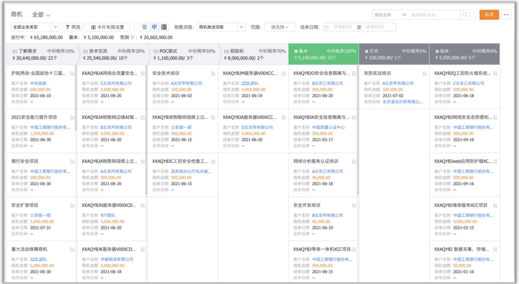 纷享销客CRM的商机穿透看板通过多维度视角,为企业提供全方位的销售健康度诊断。