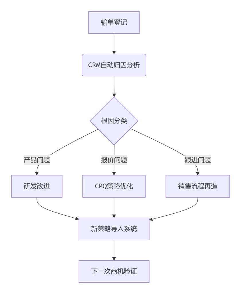 通过纷享销客等CRM系统的数据沉淀,输单原因可归因于四个关键环节: