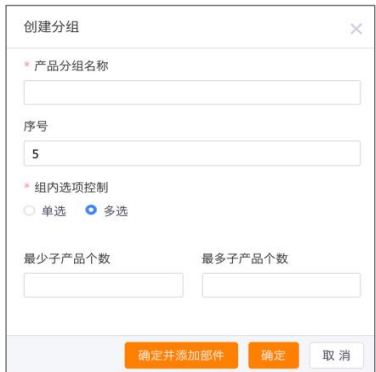 2.产品分组:组内产品支持单选、多选,可设置最少最多选择数量