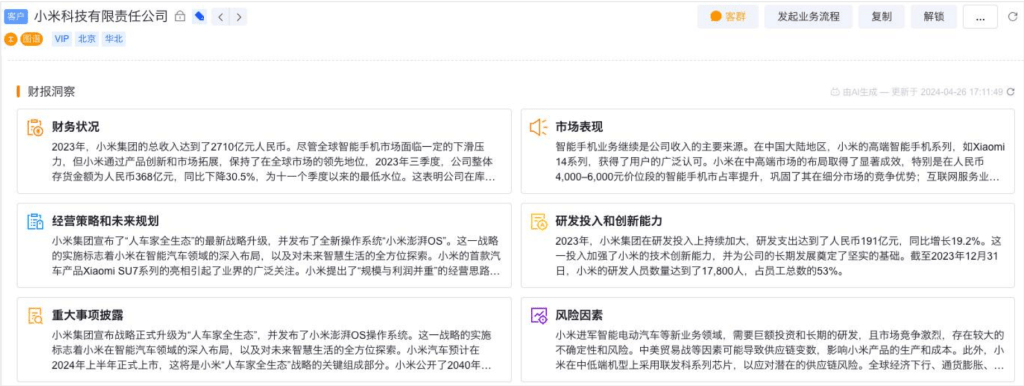 纷享销客持续创新,已在AI风险洞察方面取得突破: