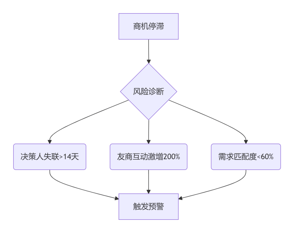 销售漏斗中隐藏的最大成本,是那些看似推进中实则濒临死亡的商机。Salesforce数据显示:43%的商机因决策链失控而流失,表现在: