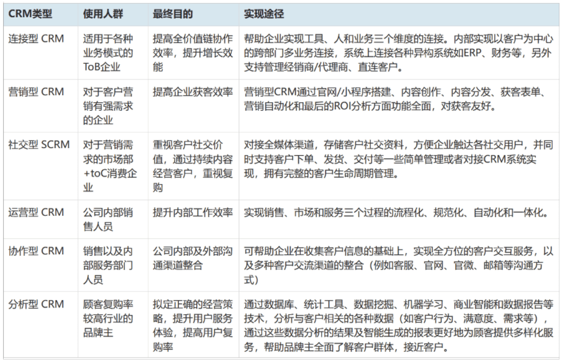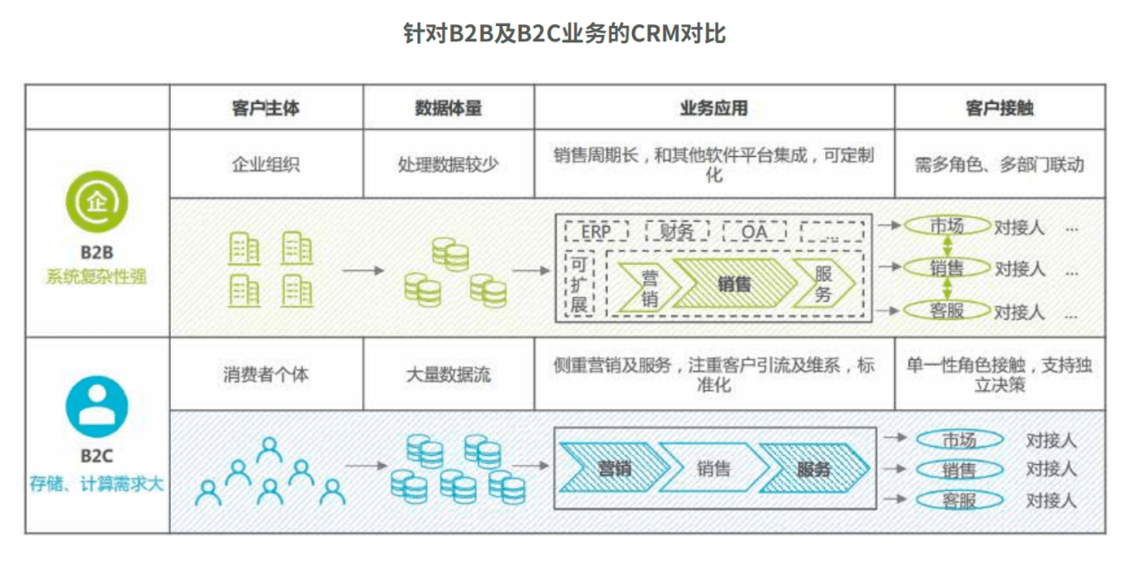 1 、按管理对象:To B(管理企业客户)、To C(管理个人客户)