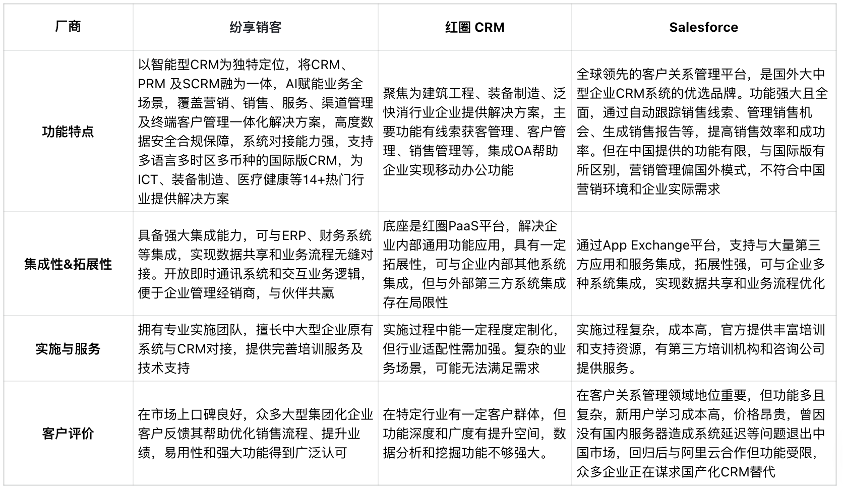 市场上存在众多的CRM系统提供商,企企业应根据自身的业务需求和发展战略,选择合适的CRM系统,并注重实施过程中的细节和持续优化,以充分发挥CRM系统的价值,实现客户关系的深度优化和企业价值的最大化。例如,文中提到的CRM系统提供商纷享销客、Salesforce等,提供了功能全面、技术成熟的产品,适用于大型企业或对系统功能要求较高的企业;而一些中小型企业可能更适合选择一些本地化的、专注于特定行业或业务领域的CRM系统提供商,这些提供商的产品可能在价格上更具竞争力,且能够更好地满足企业特定的业务需求。总的来说,CRM系统是企业提升竞争力、实现可持续发展的有力工具