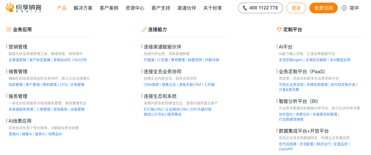 纷享销客专注于销售管理和客户关系管理,深度融合AI技术,实现业务全场景智能化,覆盖营销、销售、服务全链路。其强大的定制化能力,可无缝对接ERP、财务、企微等多系统,满足企业个性化需求。采用云计算技术,保障系统稳定性和安全性,性价比高,页面简洁直观,且支持国际化,几乎能够满足大、中、小型企业对CRM管理的所有需求,尤其在高科技、现代企业服务、快消、农牧、大制造等行业表现出色。