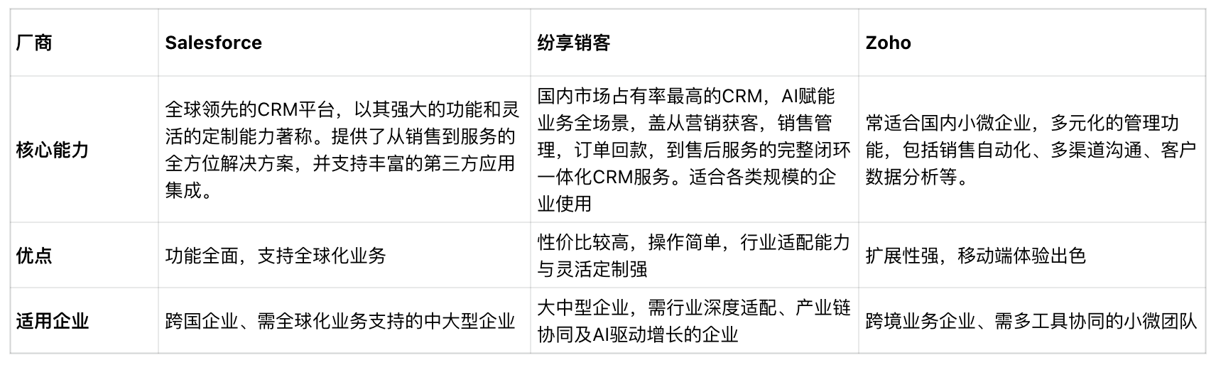 同时,企业在选择销售管理系统时,需要根据自身的业务需求、行业特点和预算情况,综合考虑系统的功能完整性、易用性、安全性以及供应商的实力和信誉等因素,选择最适合自己的产品。无论是全球知名的Salesforce还是国内市场占有率第一的CRM系统纷享销客以及国际知名的Zoho都是不错的选择哦~