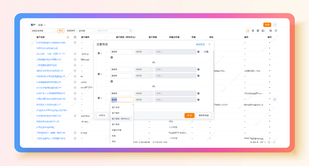 · 复杂条件组合筛选:支持多维度条件(如区域、时间、业务属性等)组合筛选,即便叠加 “区域 + 合作等级 + 交易规模” 等多层级条件,仍能保障查询结果快速呈现,不耽误业务推进;